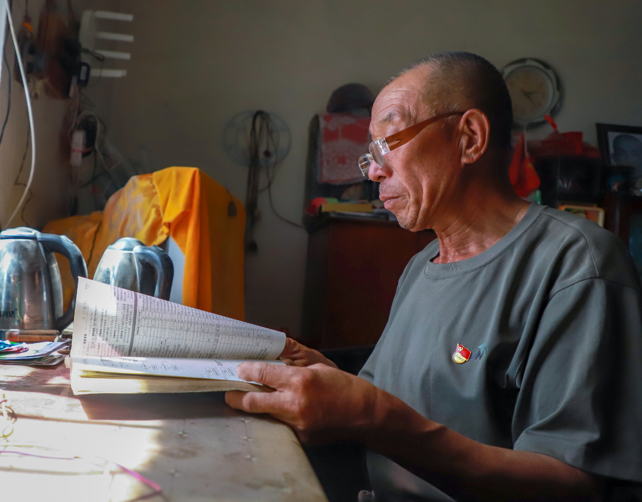 在老贺的爱心维修铺里,堆放着各种等待维修的小家电,电风扇、电热水壶、电饭锅、电视等,显得有些凌乱。但为村民免费修家电这件事儿,老贺坚持了20多年,且从无怨言,一如既往免费为大家服务。“我自己年轻的时候就喜欢捣鼓电器这些,现在帮邻居们修理电器,能帮到大家我心里也特别高兴。”20余年帮邻居维修小家电,老贺却说得轻描淡写。