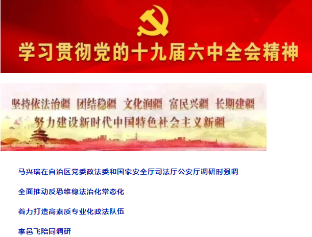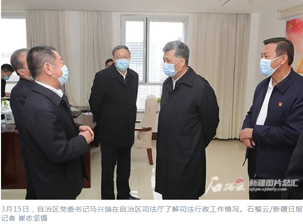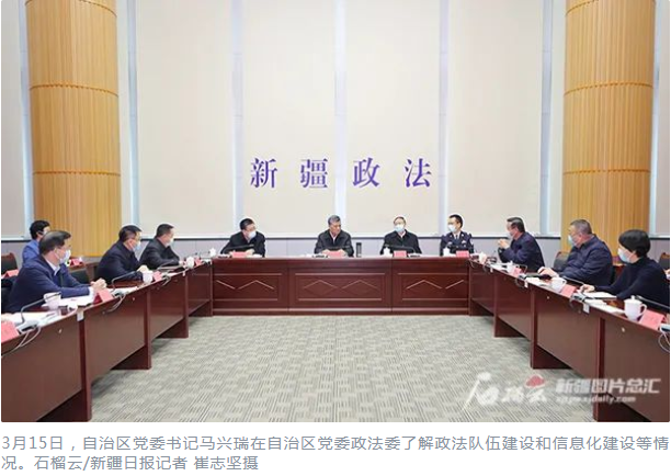 自治区党委书记马兴瑞3月15日到自治区政法系统有关单位调研时强调,要深入贯彻习近平法治思想,以为党的二十大胜利召开创造安全稳定的政治社会环境为主线,把全面依法治国的要求落实到新疆工作各个领域,完整准确贯彻新时代党的治疆方略,牢牢扭住社会稳定和长治久安总目标,全面推动反恐维稳法治化常态化,建设忠诚干净担当的高素质专业化政法队伍,持续提升新时代政法工作能力和水平,为实现新疆社会稳定和长治久安提供坚强法治保障。