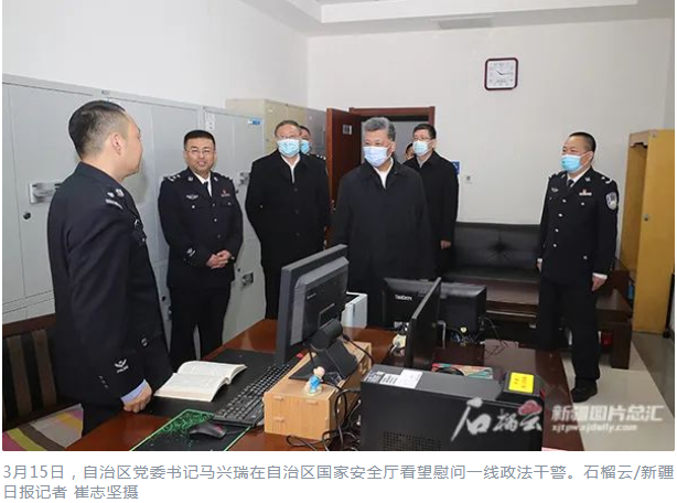 马兴瑞分别来到自治区党委政法委和自治区国家安全厅、司法厅、公安厅特警总队,认真听取政法工作情况汇报,深入了解反恐维稳、社会治理、政法队伍建设、信息化建设等情况,与基层一线政法干警深入交流。